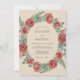 Crimson roses and verdant ferns define this vintage-inspired botanical design. The hand-painted watercolor style showcases a rich palette of deep red, sage, and cream. Lush foliage and floral blooms create a romantic, rustic atmosphere suitable for a timeless marriage. This artistic arrangement emphasizes natural beauty and earthy elegance.