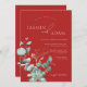 Invitación Crimson Red Eucalyptus Greenery Monograma Boda