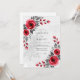 This design features deep crimson roses paired with charcoal grey foliage for a striking contrast. The romantic floral arrangement creates an elegant atmosphere suitable for a formal winter theme. Subtle grey floral shadows in the background add depth and a touch of sophistication to the overall aesthetic.