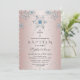 Diseño elegante con cristales plateados con perlas y diamantes azules sobre un gradiente rosa con fondo de copos de nieve plateados. Un diseño de tarjeta perfecto y elegante para aquellos que buscan combinar su tema de bautizo con el brillo de las fiestas de invierno. Personalízalo con tu información. Para artículos que coincidan, por favor, visita mi Nueva Colección de Celebración de Bautizo/Confirmación.