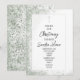 Una invitación para bautizar con salpicaduras verdes en el fondo con letras negras.