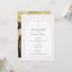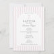 Un bonito diseño bautista con un arco moderno con una cruz rosa y un fondo rayado y un ícono ortodoxo griego de la Virgen María en el reverso de la tarjeta. Un diseño religioso ideal para el bautismo de una niña. En esta colección de diseño se pueden ver la papelería y la decoración coincidentes.