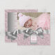 Elegantes remolinos rosas con una ensimismada niña de la proa gris plateada foto bautismo y invitación a bautizar. Esta elegante invitación a bautizar y bautizar con fotos en rosa y gris se personaliza fácilmente para tu evento simplemente eligiendo el botón "Personalizar it!" para empezar a añadir tu foto, detalles del evento, estilo de fuente, tamaño y color de fuente, y redacción. Por favor, tenga en cuenta que todos los pegatinas, tarjetas y diseños de invitación que encontrarás en Zazzle son gráficos impresos sin joyas, arcos, arcos, grabados en relieve, o piezas o piezas añadidas.