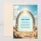 Celebre la alegría de la Pascua con esta impresionante invitación de desayuno Pascual religioso. Con suaves flores de primavera y un cielo azul sereno con palomas volando encima, este diseño simboliza hermosamente la renovación y la esperanza. Perfecto para una reunión significativa de Pascua con familiares y amigos, esta invitación captura la esencia espiritual de la festividad.