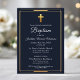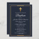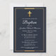 Invitación Cruce de oro estilo moderno Navy Baptismo elegante