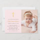 Invitación Cruce de oro falso simple Baptismo de foto rosa