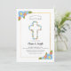 Celebra el sacramento religioso de tus hijos con esta invitación religiosa con flores azules, rojas y amarillas y una cruz central. <a href="https://www.freepik.com/free-photos-vectors/background">Vector de fondo creado por freepik - www.freepik.com</a>). La tarjeta es fácil de personalizar con su redacción, fuente, color de fuente y elección de seis tipos de papel.<br/>() ¿No es exactamente lo que estás buscando? Todos nuestros productos pueden ser personalizados diseñados para satisfacer sus necesidades sin coste adicional.<br/>() Simplemente contáctenos a askcottonlamb@gmail.com<br/>() Productos de coordinación disponibles: