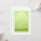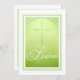 Invitación o invitación hermosa conveniente para un bautismo adulto o el bautizo del niño del niño. La cruz que brillaba intensamente del sistema oval de la forma de Cristo en verde elegante adaptó el marco doble en blanco. Personalícela con sus propios detalles de encargo en la parte posterior para un bautismal memorable invitan para la familia y los amigos. De la tienda de regalos cristiana de la fe.