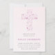 Invitación Cruz de acuarela rosa en niño de bautismo caligráf