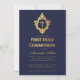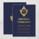 Invitación Cruz de falso oro de Primera Comunión Navy Boy en