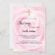 Un primer plano de una rosa rosa suave color agua rosada, flor. Personalice y agregue el nombre de los detalles de la futura madre y del fiesta.