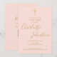 Invitación Cruz dorada de bautizo con código QR rosa