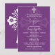 Invitación a ciruela dulce con cruz floral blanca para bautismo o bautizo. Personalice los detalles y cambie el bautismo a bautizo si es preferible. Parte de la colección de cruces florales.
