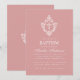Invitación Cruz y Escudo de Bautizo de Niña Rosa Elegante Ros