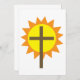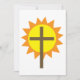 Una cruz puesta contra un sol amarillo brillante. Este diseño se ve realmente efectivo en estas invitaciones