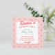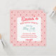 Cuadrado con un tema de fresa elegante. Incluye un detalle de encaje, fuentes manuscritas y un lazo de cinta. Tiene un ambiente de fiesta de té o picnic. Ideal para el cumpleaños de una niña o joven adulta, Día de Galentines, Día de San Valentín, reunión de amigas o incluso un baby shower. Una paleta de fresa de rojo rubí, rosa pastel / rosa sonrojado, verde menta apagado / salvia y blanco de mantel.