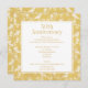 Esta invitación de aniversario de bodas número 50 en forma cuadrada presenta un área de texto blanca con un borde de línea dorada y un fondo con patrón de pájaros, flores y mariposas en color dorado y blanco. La parte posterior de la invitación presenta el mismo patrón y un área cuadrada de color dorado en el medio que actúa como fondo para las iniciales de la pareja. Esta invitación de aniversario de bodas número 50 dorada está lista para ser personalizada y es adecuada como invitación de aniversario de bodas número 50 semiformal o formal.