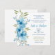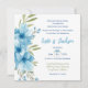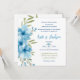 Un caprichoso acento floral de acuarela azul y fuentes visualmente agradables hacen de esta elegante invitación de boda cuadrada, evocando el dicho "Algo viejo, algo nuevo, algo prestado y algo azul". De estilo mayormente formal, con elementos más casuales entretejidos, este diseño combina perfectamente estética vintage y moderna.