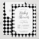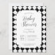 Invitación clásica y atemporal en blanco y negro de argyle para baby shower. Estilos de fuente y diseño personalizables, con un fondo simple y estampado con formas geométricas limpias. Perfecta para invitaciones de baby shower unisex, baby shower para niños, y baby shower con estilo preppy.