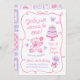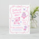 Una caprichosa invitación de cumpleaños chica en una estética de coqueta rosa suave. Este diseño único, con dibujos a mano, incluye un oso de peluche, pasteles, arcos y mariposas para una temática fiesta de tonos pastel y ondulados. Ideal para chicas de cualquier edad.