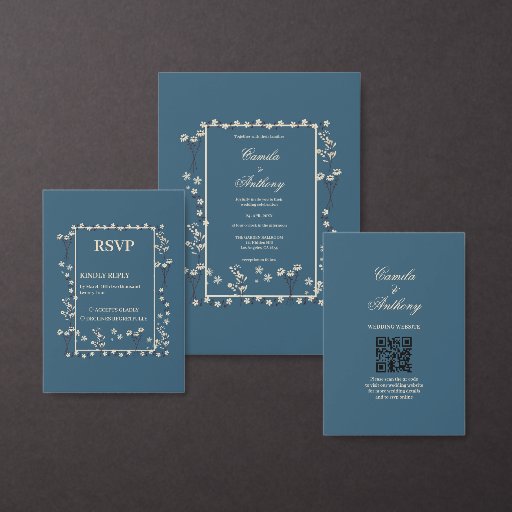 Navy White Floral Border WeddingDiseñado por Dia Sha