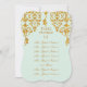 8 comensales por formato de mesa. Cambiará de forma individual los nombres y la información de cada tarjeta de tabla de asientos, luego la pondrá en su carrito de compras y repetirá el proceso hasta que tenga todos los números que necesite. Colóquelos todos en la mesa de entrada o en cada mesa individual y haga que sus invitados se mezclen al buscar sus asientos. También necesitará un soporte o marco para utilizarlos (no incluidos). RECOLECCIÓN DE DISEÑO: En verde menta suave con un aspecto metálico purpurina dorado con un efecto dimensional perfecto para coordinar con una amplia gama de bodas, duchas de novias, eventos de negocios y recepciones formales. Este es un estilizado patrón de damasco de hojas florales con tendrilos de barrido que forman una cortina que muestra sus nombres y números de mesa. El damasco con estampado está hecho con flores, hojas, rollos, remolinos y un guión elegante como florecimiento. También se ofrecen productos de bienvenida, ducha y decoración Fiesta. También podemos hacer combinaciones de colores personalizados por un pequeño suplemento.