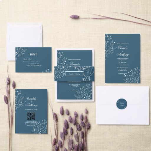 Navy Corner Floral Boho WeddingDiseñado por Dia Sha