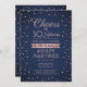 Invitar a la familia y amigos a una elegante celebración de cumpleaños para ella con invitaciones personalizados de color azul marino y rosa. Toda la redacción de esta plantilla (incluyendo "Saludos a 30 años") está configurada para un 30 cumpleaños, pero es simple de personalizar para cualquier año o tipo de evento. El diseño presenta modernos puntos de confeti de Relieve metalizado rosa de oro purpurinoso, caligrafía de escritura elegante y tipografía clásica de arte vintage. Tenga en cuenta que el oro es color impreso, no Relieve metalizado metálico. ¡Salud y cumpleaños feliz!
