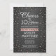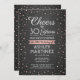 Invitar a la familia y amigos a una elegante celebración de cumpleaños para ella con personalizados invitaciones para fiestas en blanco, negro y rosa. Toda la redacción de esta plantilla (incluyendo "Saludos a 30 años") está configurada para un 30 cumpleaños, pero es simple de personalizar para cualquier año o tipo de evento. El diseño presenta modernos puntos de Relieve metalizado purpurinoso de rosa dorado sobre un falso fondo de pizarra, caligrafía de escritura elegante y tipografía clásica de estilo Art Déco. Tenga en cuenta que el oro es color impreso, no Relieve metalizado metálico. ¡Salud y cumpleaños feliz!