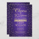 Invitar a la familia y amigos a una elegante celebración de cumpleaños con invitaciones personalizados moradas y de fiesta de oro. Toda la redacción de esta plantilla (incluyendo "Saludos a 50 años") está configurada para un cumpleaños número 50, pero es fácil de personalizar para cualquier año o tipo de evento. El diseño presenta modernos puntos de confeti purpurinoso sobre un fondo metálico falso cepillado, caligrafía de escritura elegante y tipografía clásica de arte vintage. Tenga en cuenta que el oro es color impreso, no Relieve metalizado metálico. El diseño neutro en materia de género también es adecuado para un hombre o una mujer. ¡Salud y cumpleaños feliz!