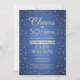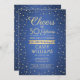 Invitar a la familia y amigos a una elegante celebración de cumpleaños con invitaciones para fiestas de oro y azul personalizado. Toda la redacción de esta plantilla (incluyendo "Saludos a 50 años") está configurada para un cumpleaños número 50, pero es fácil de personalizar para cualquier año o tipo de evento. El diseño presenta modernos puntos de confeti purpurinoso sobre un fondo metálico falso cepillado, caligrafía de escritura elegante y tipografía clásica de arte vintage. Tenga en cuenta que el oro es color impreso, no Relieve metalizado metálico. El diseño neutro en materia de género también es adecuado para un hombre o una mujer. ¡Salud y cumpleaños feliz!