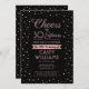 Invitar a la familia y amigos a una elegante celebración de cumpleaños para ella con invitaciones de fiesta de color rosa y negro. Toda la redacción de esta plantilla (incluyendo "Saludos a 30 años") está configurada para un 30 cumpleaños, pero es simple de personalizar para cualquier año o tipo de evento. El diseño presenta modernos puntos de confeti de Relieve metalizado rosa de oro purpurinoso, caligrafía de escritura elegante y tipografía clásica de arte vintage. Tenga en cuenta que el oro es color impreso, no Relieve metalizado metálico. ¡Salud y cumpleaños feliz!