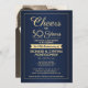 Invitar a la familia y amigos a una elegante celebración de aniversario con invitaciones de personalizado azul marino y de fiesta de oro. Toda la redacción de esta plantilla (incluyendo "Saludos a 50 años") se establece para un 50 aniversario de boda, pero es simple de personalizar para cualquier año o tipo de evento. El diseño presenta un sencillo borde moderno sobre un fondo oscuro azul oscuro, una caligrafía de escritura elegante y una tipografía de arte vintage clásica. Tenga en cuenta que el oro es color impreso, no Relieve metalizado metálico. ¡Feliz Aniversario y vítores a la pareja en su celebración!