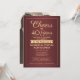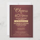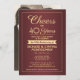 Invitar a la familia y amigos a una elegante celebración de aniversario con invitaciones del personalizado burgundy y de la fiesta de oro. Toda la redacción de esta plantilla (incluyendo "Saludos a 40 años") está configurada para un ruby 40 aniversario de boda, pero es simple de personalizar para cualquier año o tipo de evento. El diseño presenta un sencillo borde moderno con un fondo oscuro rojo oscuro, una caligrafía de escritura elegante y una tipografía de arte vintage clásica. Tenga en cuenta que el oro es color impreso, no Relieve metalizado metálico. ¡Feliz Aniversario y vítores a la pareja en su celebración!
