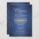 Invite a la familia y amigos a una elegante celebración histórica con esta elegante invitación de fiesta de aniversario. El diseño presenta modernos puntos de confeti de Relieve metalizado de imitación dorada y una tipografía de inspiración Art Déco de época sobre un fondo de acero inoxidable color azul marino. Tenga en cuenta que el texto es de color impreso, no de Relieve metalizado metálico. Esta tarjeta está configurada para un fiesta sorpresa de 50 años de boda dorado, pero todo el texto es sencillo para el personalizar para cualquier año o ocasión.