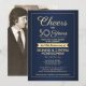 Invitación CUALQUIER brindis de aniversario azul marino y dor
