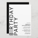 Invitaciones modernas y elegantes para fiestas de cumpleaños con un esquema de color blanco y negro neutro para satisfacer a cualquier edad.