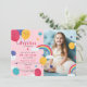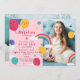 Plantilla de invitación para cumpleaños de niños de color rosa divertido, que incluye globos, arcos y nubes con la foto, nombre y edad de su hijo. Todo el texto es fácil de editar. ¿Necesita ayuda para personalizar esta plantilla? Por favor contáctame usando el botón de contacto de abajo y estaré encantado de ayudar.