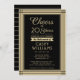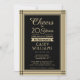 Invitar a colegas, compañeros de trabajo, familia y amigos a una elegante celebración de retiro con invitaciones de personalizados negros y de oro. La redacción de la plantilla "Saludos a 20 años" se establece para honrar veinte años de servicio, pero es simple para el personalizar de cualquier número. El diseño presenta un moderno borde rayado, caligrafía de escritura elegante y tipografía de arte vintage clásica. Tenga en cuenta que el oro es color impreso, no Relieve metalizado metálico. Su diseño neutral en materia de género también es adecuado para un hombre o una mujer. ¡Salud, felicitaciones y jubilaciones felices!
