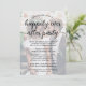 Invite a familiares y amigos a una sencilla y elegante celebración de boda sin recepción con elegantes invitaciones modernas de 2 fotos con el texto superpuesto "Happily Ever After Party". Todo el texto es fácil de personalizar para una ceremonia de renovación de votos, boda secuela, 1er aniversario, o fiesta de cena después de la fuga. Personalízalo para incluir cualquier detalle que desees, como la fecha de la boda, código de vestimenta, RSVP, sitio web, etc. (CONSEJO PARA COLOCAR IMÁGENES: Una forma fácil de centrar una foto exactamente como la deseas es recortarla antes de subirla al sitio web de Zazzle.) El diseño moderno minimalista en negro y blanco presenta dos fotos de la pareja recién casada, caligrafía de letra manuscrita de moda y tipografía de estilo máquina de escribir chic. Ya sea que se escaparan, tuvieran una boda pequeña o su celebración del día especial tuvo que ser reprogramada debido a un retraso relacionado con la pandemia de COVID, la fiesta del "felices