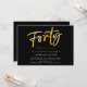 Se trata de una moderna invitación de cumpleaños sorpresa en color negro y dorado número 40. Es un diseño de escritura manuscrita simple y elegante en negro clásico, blanco y dorado. Póngase en contacto con el diseñador para cualquier consulta sobre este diseño.