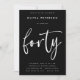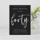 Invitación Cuarenta | Blanco moderno en negro 40 Fiesta de cu