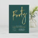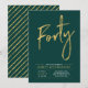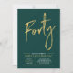Celebra tu día especial con esta sencilla y elegante invitación de cumpleaños número 40. Este diseño presenta un elegante "Cuarenta" con escritura a pincel con una distribución limpia en la combinación de colores de verde esmeralda y dorado. Más diseños y suministros para fiestas están disponibles en mi tienda BaraBomDesign.