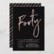 Celebra tu día especial con esta sencilla y elegante invitación a la fiesta de cumpleaños número 40. Este diseño presenta un guión de pincel de moda "Cuarenta" con un diseño limpio en combinación color oro negro y rosa. Hay más diseños y suministros de fiesta disponibles en mi tienda BaraBomDesign.