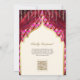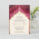 Sorprenda a sus invitados con esta invitación en una boda sij con cortinas tradicionales en un patrón de quatrefoil con código QR en la parte posterior de la tarjeta para RSVP online o agregue la URL de su lugar de celebración para ayudar a sus invitados a ubicar su lugar de boda más rápido. Simplemente agregue los detalles de su evento en esta plantilla fácil de usar para convertirla en una invitación única.