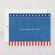 Una invitación para su cuarto de la celebración de julio que toma su inspiración de la bandera americana. Una fila del blanco protagoniza en el top con las rayas rojas y blancas en el marco inferior su información modificada para requisitos particulares. Añada cualquier mensaje o dirección adicional a su acontecimiento en la parte posterior. Disponible en hacer juego franqueo y favores.