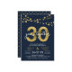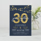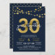 Elegante invitación de aniversario número 30 con hilos de luces y "30" en dorado falso con "años juntos" en blanco sobre un fondo azul oscuro. La tarjeta incluye un reverso con un patrón coincidente. Echa un vistazo a artículos relacionados como pegatinas y sellos aquí https://www.zazzle.com/collections/strings_of_lights_faux_gold_celebration_collection-119311942951401241?rf=238364477188679314