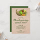 Invite a sus invitados con esta elegante invitación de cena de Acción de Gracias que presenta tipografía simple y una hermosa Cornucopia contra un fondo de arpillera. Simplemente agregue los detalles de su evento en esta plantilla fácil de usar para hacer que sea una invitación única. Voltee la tarjeta para revelar un elegante color verde en la parte posterior de la tarjeta.