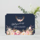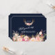 Diseño de tarjeta de Monograma de Cuerno Floral Rosado Rústico con hermosos cuernos de agua con ramo floral de rubor rosa, flechas con corazones y un ramo floral como divisor; en la parte posterior divisor floral con iniciales en un fondo azul marino rico. Puedes cambiar las fuentes, los colores. Para artículos coincidentes, por favor, visite mi Colección de Cuerno Floral Rosado. Utilice la herramienta Personalizar para agregar su información, cambiar la DAMA DE HONOR CON FLORES... para ajustarla a sus necesidades, cambiar el color de la fuente.