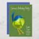 Una divertida, fresca y adorable invitación a la fiesta de cumpleaños de pájaros verdes de color agua colorido, ideal para un joven chica con un moderno y elegante ilustracion acuarela de color marrón dibujado a mano. El texto puede ser totalmente personalizado para incluir sus propios datos personales.